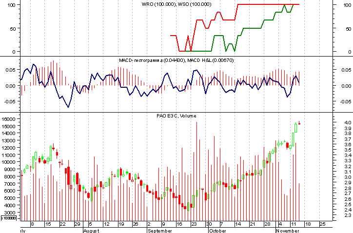 Теперь рассмотрим более понятное, графическое. На графике РАО ЕЭС http://www.howtotrade.ru/image/leoimage/eesr.png Обращу внимание на показание верхнего индикатора. Покупки на нем приходятся на середину сентября. Если бы не ограничения метастока по данным, то я бы смог показать и предыдущую продажу, которая приходилась на май. И сейчас, в последние дни он показал окончание роста и формирование продажи. Я не говорю, что не может произойти определенное обновление хая. На нашем рынке все может быть. Но, все таки, пока больше за то, что коррекция назрела. Ну и второе, MACD-гистограмма, которой так и не дали ни разу за это время снизится ниже нулевой отметки. Уже раз нарисовала дивергенцию, но она была сломана новостным фоном. Сейчас снова формируется дивергенция. Неужели и она не будет реализована? Почему я говорю, что формируется, так уверенно? Для этого следует обратить внимание на осциллятор, который присутствует вместе с MACD-гистограммой. Его задача предупреждать заранее о развороте гистограммы. Он дал поворот вниз. Вот на этом и сформировано мое ИМХО. С уважением. |