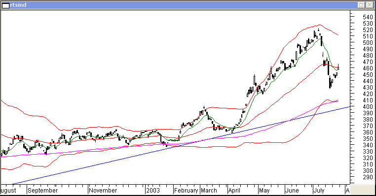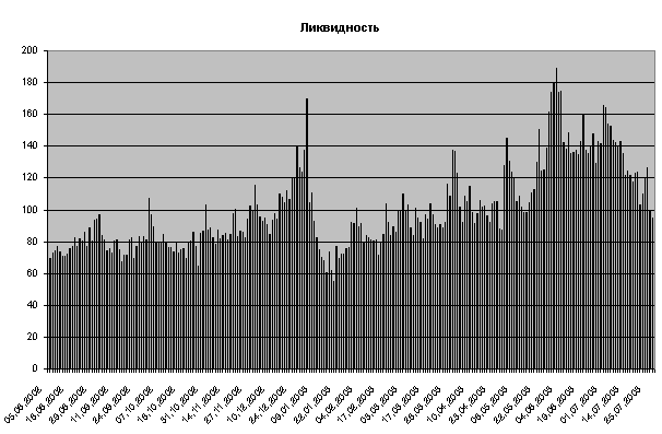 Дмитрий Смирнов. Притчей во языцех стал тот факт, что одной из основных причин роста рынка акций в первом полугодии этого года стала необычайно высокая рублевая ликвидность. Представляет интерес проанализировать влияние ликвидности на динамику нашего рынка акций. График остатков средств на корреспондентских счетах кредитных организаций (именно их мы будем называть ликвидностью) показывает, что с апреля 2003 г. более 3 месяцев наблюдается стабильно высокая ликвидность (можно также отметить кратковременную двухнедельную высокую ликвидность в декабре 2002 г.). Если за апрель-июнь 2003г. среднее значение ликвидности составляло 140 млрд р., то за август 2002г.-март 2003г. – только 88 млрд р. Можно заметить, что с начала июня по ликвидности наблюдается падающий тренд. На сегодняшний день уровень ликвидности практически сравнялся со средним значенем 2002г.-начала 2003г. (сейчас 94 млрд р.) Основная причина резкого роста рублевой ликвидности заключается в высоких ценах на нефть в январе-марте 2003г. на ожиданиях войны в Ираке (разумеется, были и другие причины высокой ликвидности, например, рост корпоративных кредитов за рубежом). Как видно на графике, с конца марта цены на нефть вошли в свой обычный долговременный диапазон 22-29$. Спустя 3 месяца временного лага высокие цены на нефть нашли отражение в рублевой ликвидности. Теперь об индексе РТС. Расчеты показывают, что если за 2000-2002гг. коэффицент корреляции между РТС и рублевой ликвидностью составлял 0,1, то с августа 2002г. коэффициент корреляции уже стал 0,78. Как видно по графику, практически весь период август 2002г.-март 2003г РТС находился в диапазоне 330-370 (в условиях низкой рублевой ликвидности), а с апреля 2003г быстро вырос (в условиях высокой рублевой ликвидности). Можно увидеть, что быстрый рост ликвидности сразу отразился на рынке акций. В то же время максимум РТС приходится на начало июля, а максимум рублевой ликвидности был в начале июня, налицо месячный временной лаг между постепенным снижением ликвидности и падением РТС. Еще одно любопытное наблюдение: отношение средних значений ликвидности за апрель-июнь 2003г и за август 2002г-март 2003г. составляет 1,59, а отношение максимума РТС за апрель-июнь 2003г и минимума диапазона за август 2002г-март 2003г. составляет 1,57, т.е. эти отношения практически совпадают. С учетом того, что ликвидность практически вернулась к своему среднему значению 2002г.-начала 2003г и отсутствия оснований для ее значительного роста (нефть скорее всего не выйдет из своего диапазона, также маловероятен в нынешних условиях рост зарубежных инвестиций), следует ожидать возврат к диапазону РТС 330-370 спустя 1-1,5 месяцев. P.S. При принятии торговых решений необходимо иметь в виду, что данная модель не учитывает корпоративных новостей, которые, к сожалению, не поддаются формализации.