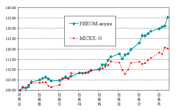 Честно скажем – ждали подвоха. Ответ же вполне удовлетворил: Такой рост стал возможен благодаря удачной структуре портфеля фонда. Примерно половина портфеля фонда в тот момент находилась в деньгах, существенную часть портфеля составляли акции Иркутскэнерго, котировки которых как раз тогда выросли очень существенно, и акции ОАО "Роснефть-Сахалинморнефтегаз", которые также неплохо прибавили в этот период. Действительно, признаваемая котировка (для ликвидных акций совпадает со средневзвешенной за день) акций Иркутскэнерго выросла в тот день аж на 23,3%, чего вполне хватило, чтобы при падающем индексе показать рост пая. Итак, нет оснований заподозрить ПИФ «РИКОМ-акции» в «рисовании» стоимости пая. Фонду «РИКОМ-акции» пока удается выжать все соки из растущего рынка, существенно обогнав индекс в последние недели. Будем в дальнейшем внимательно следить за этим фондом. Статистика показывает, что лидеры недолго остаются лидерами, а впереди – падающий рынок, ведь деревья не растут до небес. Павел Виг. 23 сентября 2005 г. |